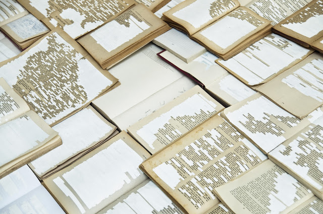 Correction fluid on books of geography, history, law and literature. 120 x 100 x 12 cm. 2012